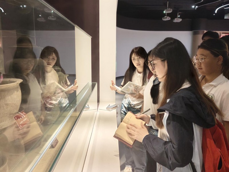 图为团队成员在枣博物馆参观文物、学习记录场景。李秀颖 摄