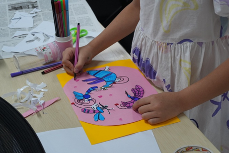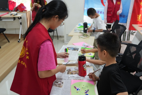 最受欢迎的环节当属“驱蚊手工DIY”。志愿者带领孩子们利用卡纸、彩笔等材料制作创意驱蚊手工,用粘土捏出蚊香,以卡纸裁出蚊虫。既锻炼动手能力,又将防蚊知识融入实践。志愿者们教授儿童们驱蚊手工的制作方法,并指导陪伴儿童亲手尝试。