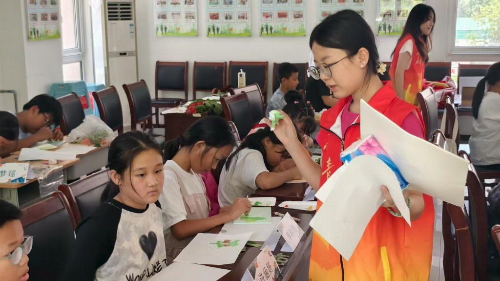 在天津新型融合社区,服务队瞄准“拆迁村汇聚、儿童语言基础参差”的实际,将普通话融入非遗体验。漆扇绘制课上,孩子们握着画笔,用普通话诵读“接天莲叶无穷碧”等古诗词,在调漆勾勒间,把诗意与规范发音相融;拓印工坊中,“福”“寿”等传统文字的方正笔画,搭配志愿者指导的标准朗读,让文化认知随语言学习深化;扎染体验时,“渐变蓝像天空”“这朵纹样像社区标志”的描述,让普通话成为创意沟通的桥梁。
