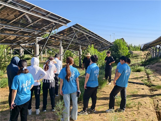 实践团走访调研了多个生态修复示范基地。在国能准能集团黑岱沟露天煤矿,成员见证“煤海”变“绿洲”的奇迹,学习“剥离-采矿-回填-复垦”一体化模式。在准能露天矿排土场生物综合修复基地,学习干旱区采矿废弃地基质重构、耐旱植被配置及菌类微生物修复技术。在曹家滩 “光伏+生态修复”基地,了解“光伏固沙”技术及微生物增强植物抗逆性的应用,以及煤矸石制备生态土、矿井水净化等资源循环利用项目,见证了当地推动塌陷区生态与经济转型的成果。