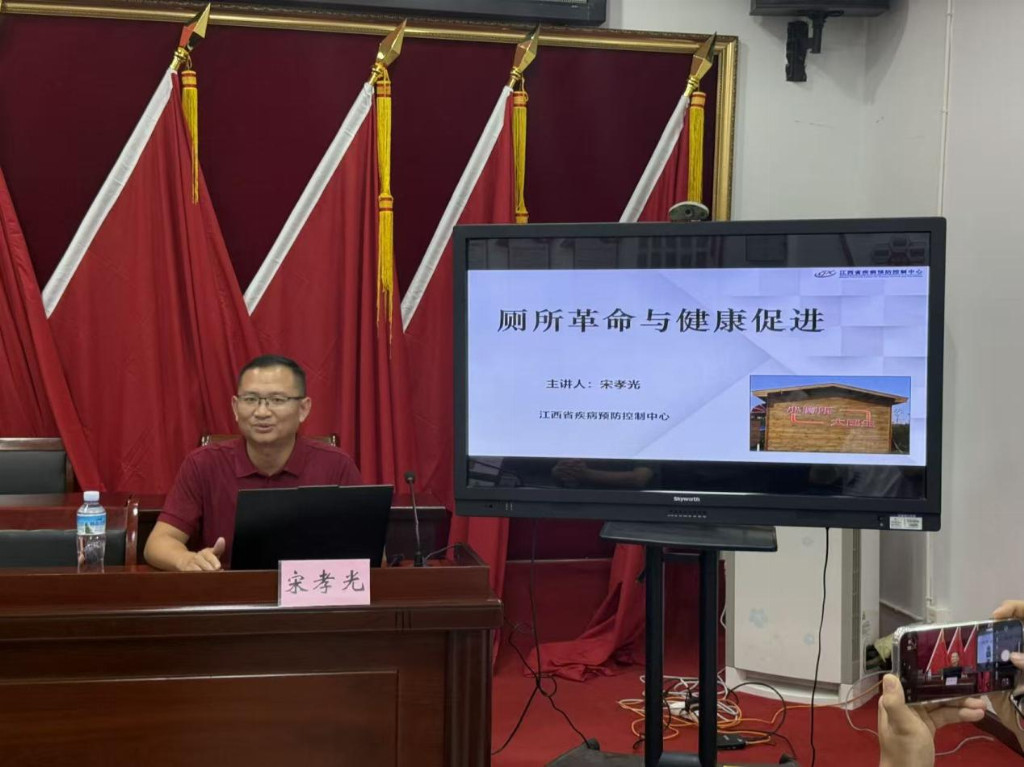 9月11日下午,2025年省级农村改厕技术指导巡回服务——浮梁站活动在浮梁县三龙镇文化站举行。省疾控中心环境科副科长宋孝光、科员吴鑫,景德镇市卫健委三级调研员付建清、爱卫办主任章红,浮梁县卫健委党组书记、主任占海英等出席培训会。各乡镇卫健办主任、三龙镇各村书记等参加培训。