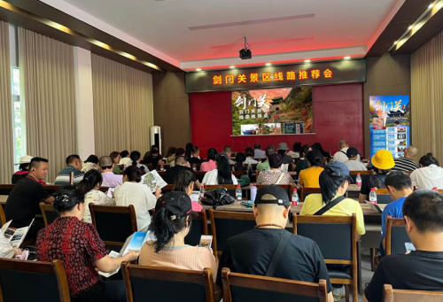 2025年9月18日,在成都斯维登温泉酒店举办“雄关漫道,剑门寻踪”线路产品推介会,全面呈现剑门关及川东北文旅资源,吸引四川地区近百旅行社代表参与。