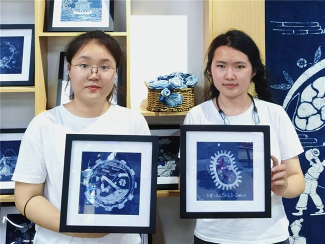 图为团队成员在体验苗族蜡染制作过程。供图 廖帮钰