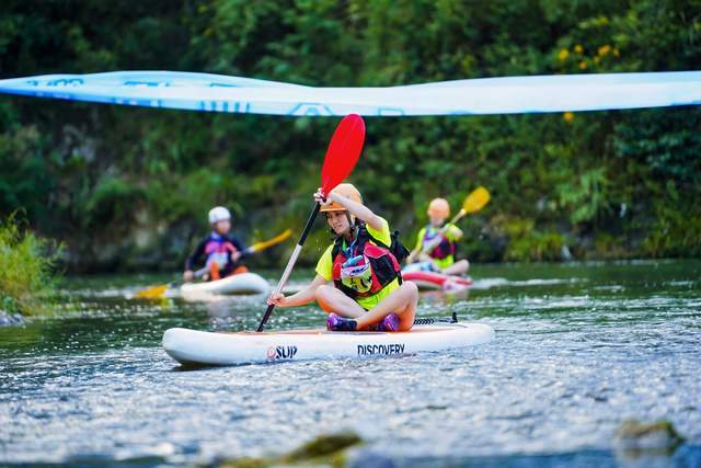 比赛设在风景如画的开阳“十里画廊〞核心流域,全长约3.4公里。12支来自全国的企业队伍依次出发,在青山绿水间展开桨板竞速与三大趣味打卡任务的综合比拼。"水上钢琴家""飞盘九宫格+你比我猜""桨板斗牛"等任务点不仅考验队员的个人体能与技巧,更凸显团队协作与策略执行的重要性。沿途设有专业救援与医疗保障,确保赛事安全有序进行。