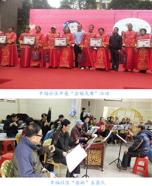 社区现有居民4396人,其中60岁以上老年人1145人,根据老人的经济情况、身体状况、家庭结构、养老需求等,划分为特殊保障类(特困供养、低保、残疾老人)28人、重点关注类(高龄、失能半失能、空巢独居老人)148人、优待类(退役、模范老人)53人和普惠服务类916人,社区定期组织党员志愿者到老人家中提供医疗健康、法律援助、纠纷化解、心理疏导等服务。由银龄志愿者自编自创自唱的“幸福之歌”,成了老人们知足向上的精神寄托。在金婚庆典活动中,社区邀请了十对金婚夫妇分享他们的爱情故事。社区还牵头组建小区广场舞队、合唱团、乐器队等5支老年活动团队,创新推出“幸福银龄课堂”,为老人们编织起一张充满人文关怀的“幸福网”,打造了集健康、智慧、互助于一体的全国老年友好型社区,让“银发族”生活更加多姿多彩。