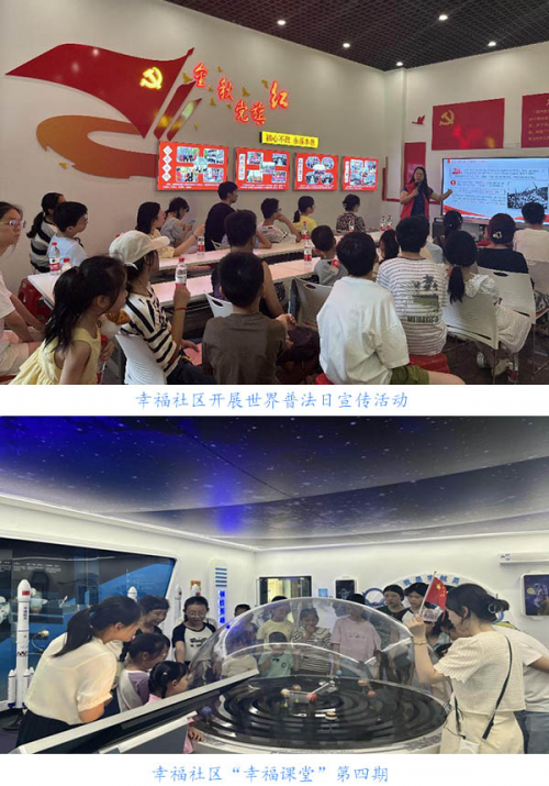 “我们志愿军没有飞机大炮,但是我们很勇敢……”社区青年团员志愿者正在讲述着长津湖、水门桥等红色革命战役,带领青少年一同阅读《小英雄雨来》《闪闪的红星》等,培养他们对党和国家的热爱之情,这里是社区创新推出的暑期“幸福课堂”,为辖区青少年创造一个学习知识、拓展兴趣、增进友谊的优质平台。社区还邀请现就读于清华大学的高考状元曾文凯同学走进“幸福课堂”,为大家带来一场学习分享交流会,他根据自身经历畅谈学习心得,为青年团员们传经送宝。“幸福课堂”还包含安全教育班、科技探索班、体育书法班和志愿实践班等课程,多达2000余人次参与。