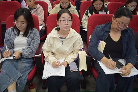 下午的讲座中,杨志宇老师以《玩数字游戏,育核心素养》为主题,通过生动的教学实例与案例分析,深入浅出地阐释数学核心素养的内涵与培养路径。他提出 “教师成长 = 实践+反思”的成长公式,鼓励教师在教学中创新形式,将数字游戏融入课堂,让学生在趣味互动中提升数学思维与综合能力。参训教师们认真聆听、积极记录,围绕核心素养培养展开热烈讨论,纷纷表示对数学教学有了全新认知,掌握了更有效的教学策略。