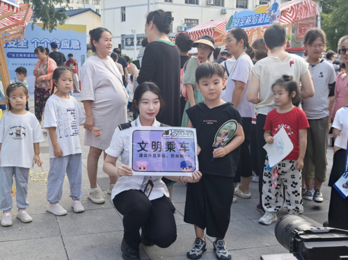 “大家来找茬”游戏区充满欢声笑语,孩子们火眼金睛识别不文明乘车行为。“不能抢座位”“禁止饮食”等一张张童趣便签贴满了“安全承诺树”,勾勒出文明出行的共同愿景。家长王女士表示:“这种游戏化学习比单纯说教更有意义,孩子连回家路上都在念叨呢!”
