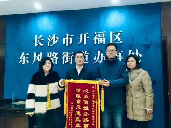 公司为街道送来锦旗,感谢街道对公司成立所做出的真诚服务。