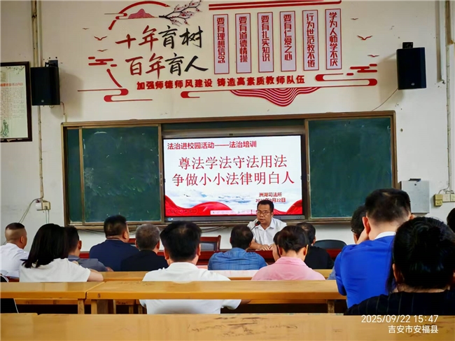近日,江西省吉安市安福县洲湖中学先后邀请洲湖镇司法所、派出所进校园宣传法律知识,旨在贯彻落实法治宣传教育周活动要求。