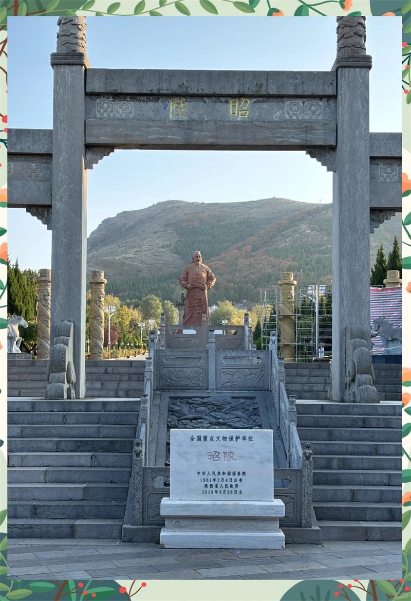 昭陵是唐太宗李世民与文德长孙皇后的合葬陵墓,位于礼泉县九嵕山,为唐代关中十八陵中规模最大的帝王陵园。其陵园周长60公里,占地200平方公里,共有209座陪葬墓,主要有长孙无忌、程咬金、魏征、温彦博、段志玄、高士廉、房玄龄、孔颖达、李靖、尉迟敬德、长乐公主、韦贵妃等墓,还有少数民族将领阿史那社尔等15人之墓。开创唐代依山为陵的建制先例,由阎立德、阎立本主持设计,整体布局仿照长安城结构。