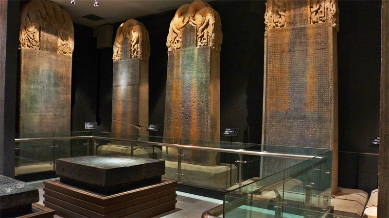 在《昭陵碑林》展厅,巩书茶说,这里集中了昭陵陵园现存的40通碑石及出土的40余合墓志,22通名列1979年国家文物局公布的“全国第一批书法艺术名碑名单”,堪称初唐书法艺术的荟萃之地。这些碑石的撰文者汇集了岑文本、令狐德棻、许敬宗、李义府、于志宁、上官仪、刘祎之、崔行功、郭正一、刘宁等初唐文坛名流;书丹者则包括了欧阳询、褚遂良、殷仲容、王知敬、高正臣、畅整、于立政等书法大家,乃至唐高宗李治。中国著名哲学家、近代史专家胡绳先生曾题词赞叹“昭陵诸碑汇集一堂,多有为前代金石学家所未能梦见者,实为洋洋大观。”