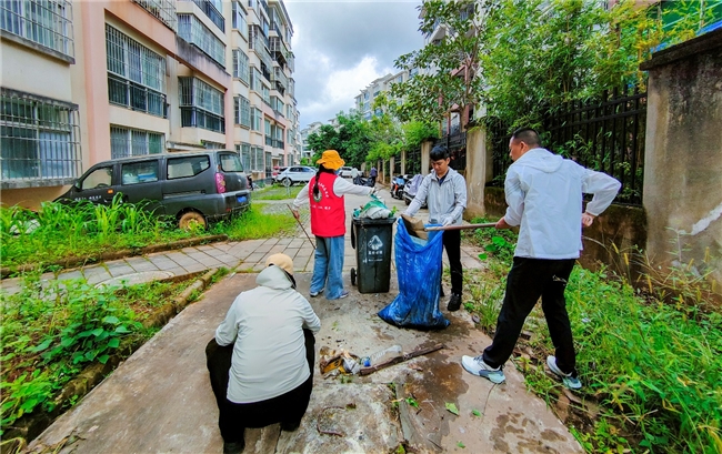 志愿者在小区清除垃圾。/茶马古道社区供图
