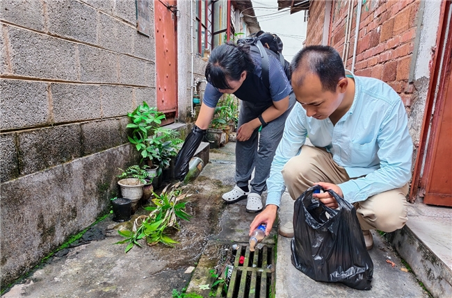 “近期,茶马古道社区组织挂包单位干部、群众等参与环境卫生整治行动,列出‘蚊子产房清单’后逐项打卡揪出‘蚊窝’。整治行动将目光锁定在常年无人问津的卫生死角、围墙夹缝的杂物、长期裸露在外的瓶瓶罐罐,进行拉网式、地毯式的大排查、大清理,确保蚊虫孳生地无积水残留;同时喷洒杀虫剂消灭蚊虫,全面抓实登革热、基孔肯雅热等防控工作。”茶马古道社区副书记陈永坤介绍道。