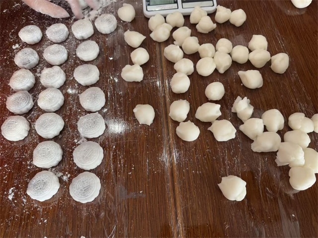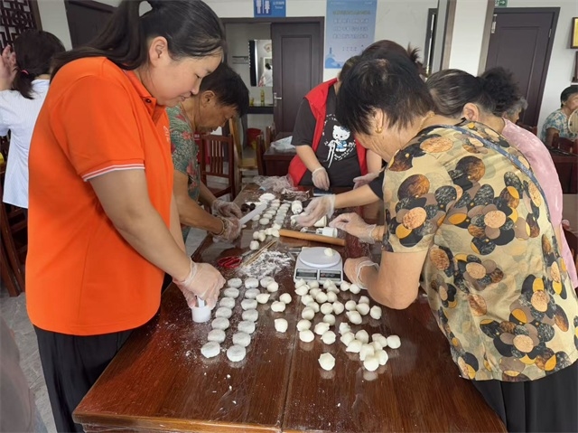 活动现场,手工月饼制作区格外热闹。村民们围聚在桌旁,戴上一次性手套,有条不紊地投入到冰皮月饼的制作中:揉面时的专注、包馅时的细致、压模时的期待,让一个个圆润的面团在巧手下逐渐变成花纹精致的月饼。大家相互交流技巧、分享心得,欢笑声与面团的麦香交织,提前营造出浓浓的中秋氛围。“平时忙,很少和邻居们一起做手工,今天既学了做月饼,又能和大家热闹相处,感觉特别好!” 村民李阿姨一边展示刚压好的月饼,一边笑着说道。