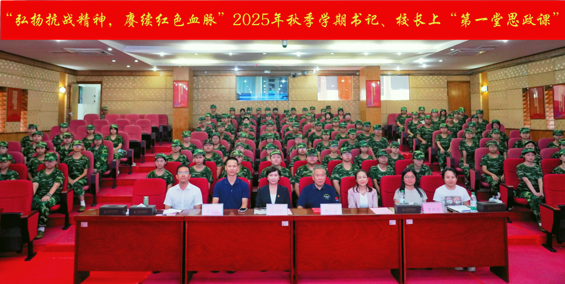 在纪念中国人民抗日战争暨世界反法西斯战争胜利80周年之际,为引导广大青年学生深刻铭记历史、缅怀革命先烈、汲取奋进力量。9月25日,广州卫生职业技术学院校长麦倩挚与彭湃之孙、彭士禄之子,中国红色文化研究会常务理事、广东省红色文化研究会副会长彭浩带来了一场内涵丰富、感人至深、立意高远,双师同堂授课的“思政第一课”。马克思主义学院党支部相关工作负责人黄燕媚、马克思主义学院相关教师、2025级新生代表150多人参加了“思政第一课”。本次“思政第一课”由马克思主义学院院长黄汉昌主持。