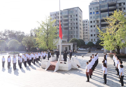 在县局机关办公楼前坪,税务干部们精神抖擞,整齐列队。上午9时,伴随着雄壮激昂的国歌声,鲜艳的五星红旗冉冉升起,全体干部面向国旗行注目礼,高唱国歌,深切表达对伟大祖国的无限热爱和崇高敬意,现场气氛庄重而热烈。