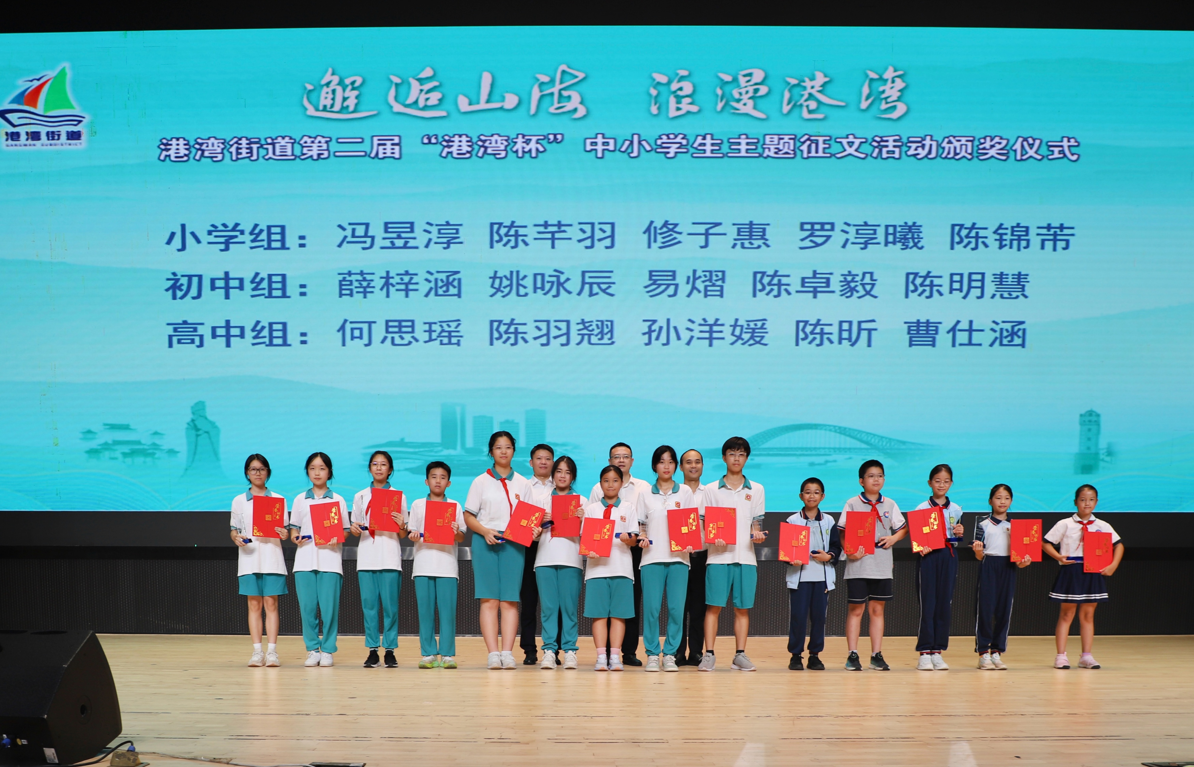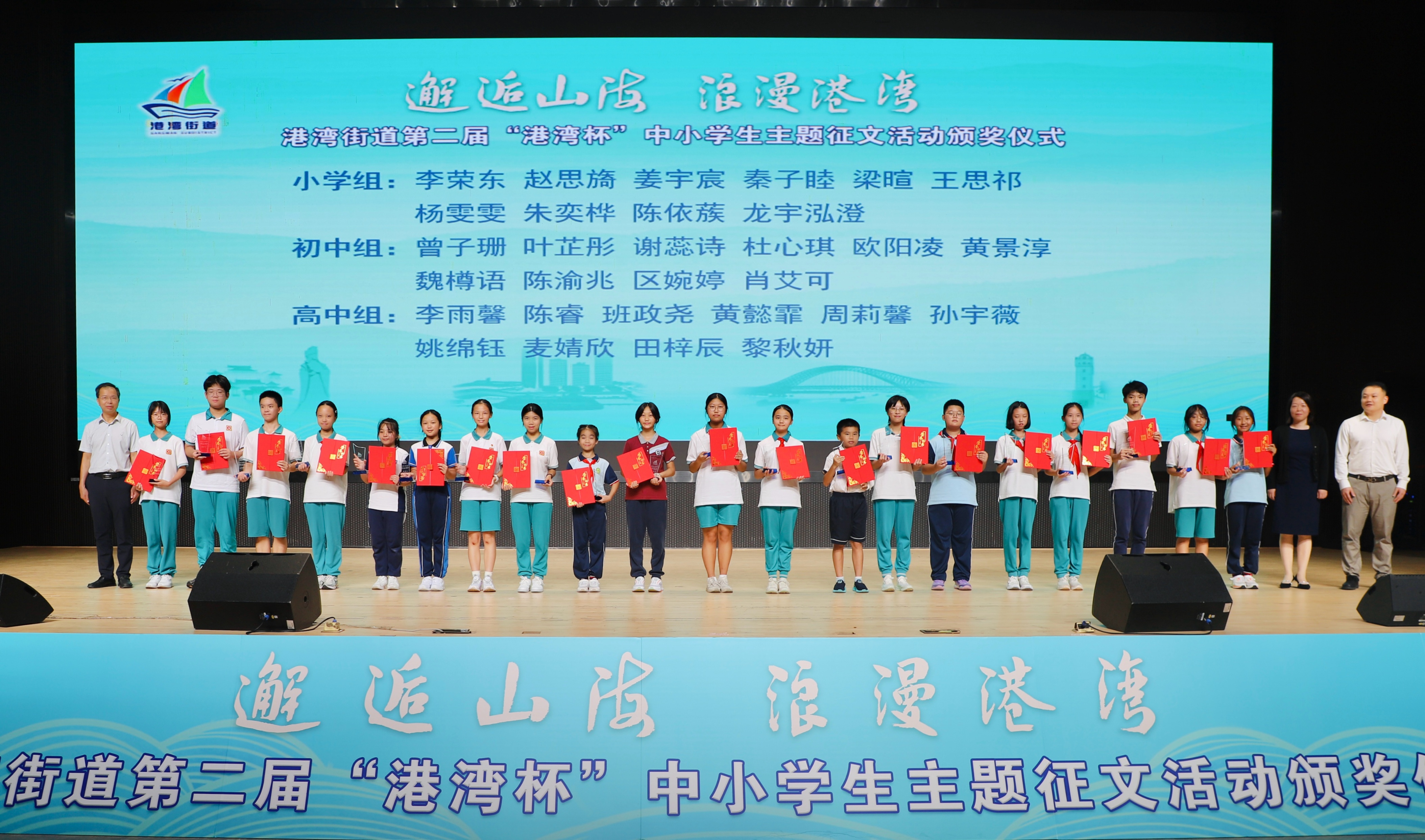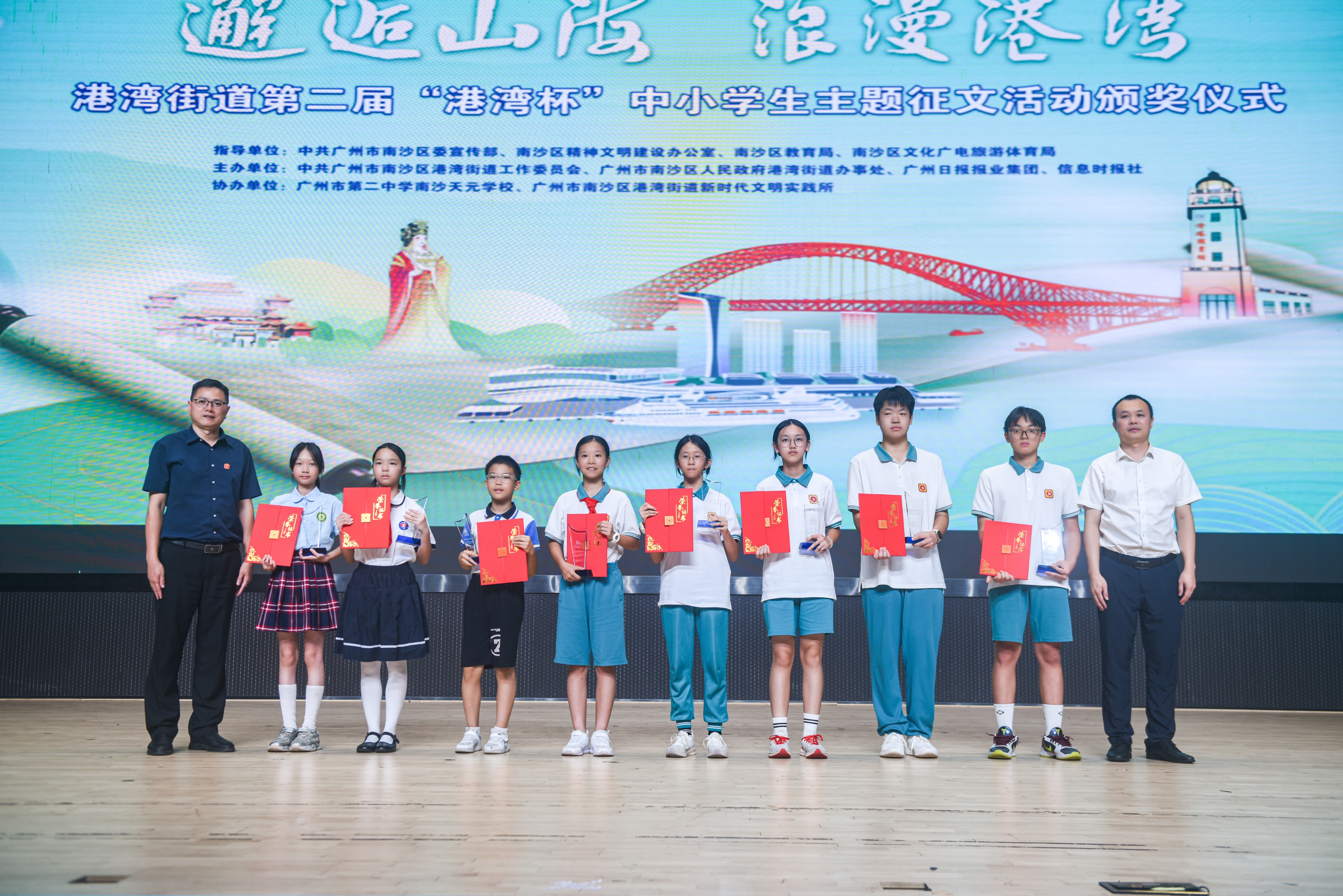 9月29日,港湾街道第二届“港湾杯”中小学生征文大赛颁奖活动在南沙区举行。本次活动由广州日报报业集团、中共广州市南沙区港湾街道工作委员会、广州市南沙区人民政府港湾街道办事处、信息时报社联合主办,南沙区相关领导、港湾街道部分班子成员、科室代表、获奖学生及家长等近两百人齐聚一堂,共同见证南沙学子以文字和镜头诠释“浪漫山海”的精彩时刻。