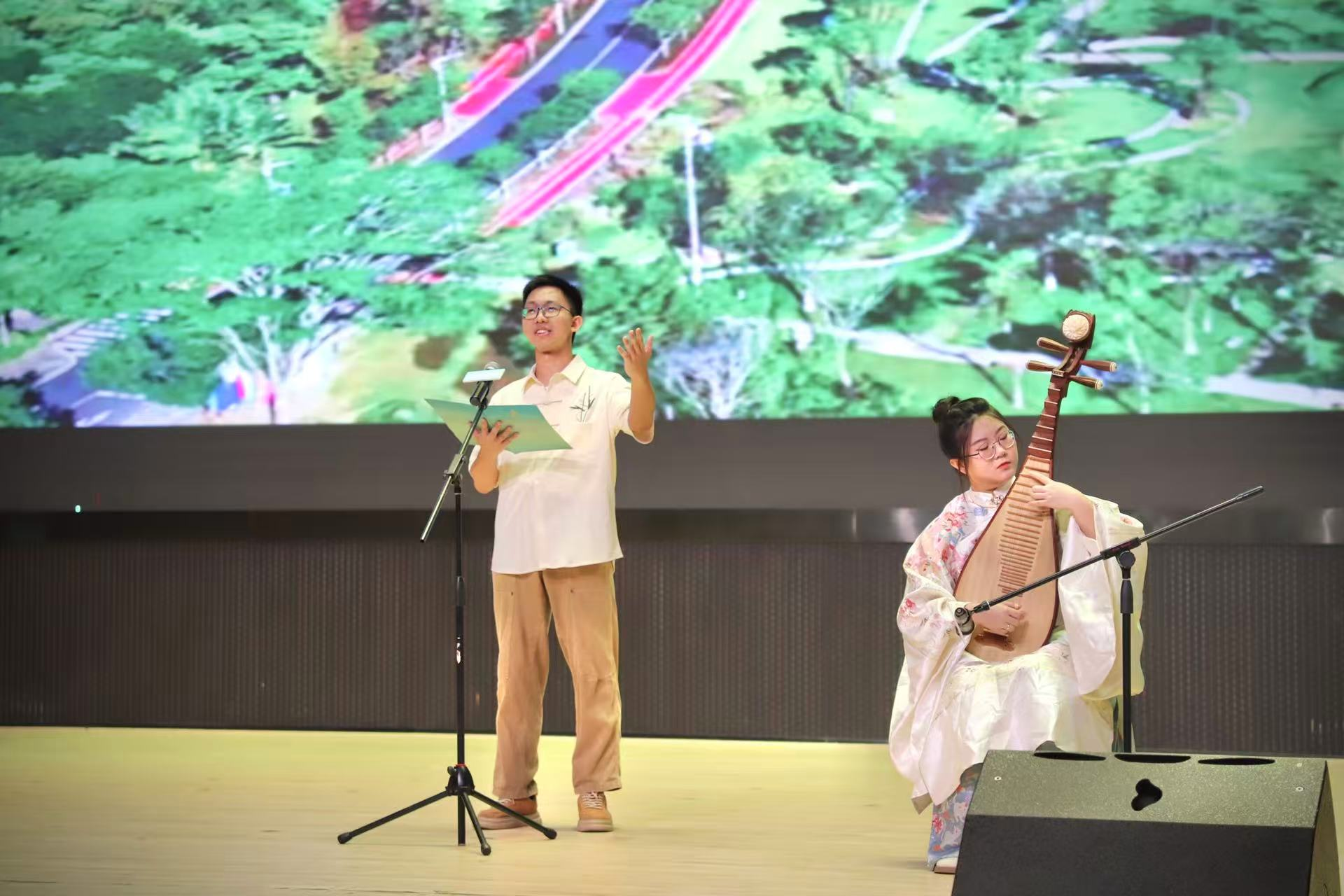 随后,《山海执笔,港湾留声》正式亮相,优秀朗诵者与琵琶演奏者同台,将数篇获奖作品中的精彩段落串联成篇,勾勒出南沙学子笔下的港湾画卷。