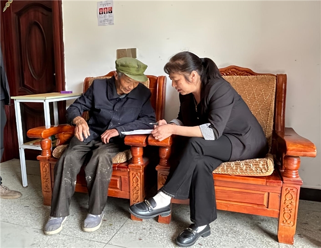 罗志红(右)在走访村民罗焱明。