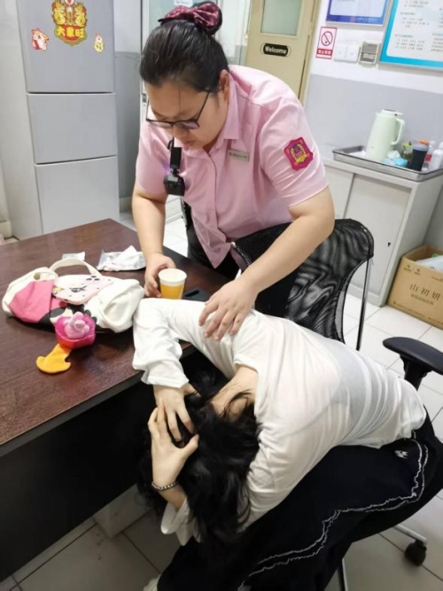 值班站长孙丽萍第一时间发现了这位乘客的异常情况,她迅速上前,小心翼翼地搀扶着该乘客到站长室休息。在站长室里,孙丽萍贴心地为乘客倒了一杯温水,并拿来暖宝宝,希望能缓解乘客的不适。