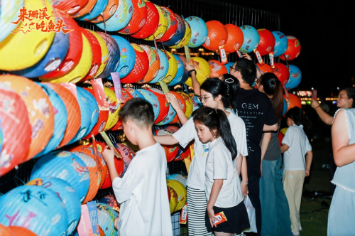 鱼灯高挂、谜语竞猜、露天电影、特色市集、直播带货等环节,营造出浓厚的节日氛围。游客们在此赏月、逛集、拍照,感受传统与现代交融的中秋韵味。