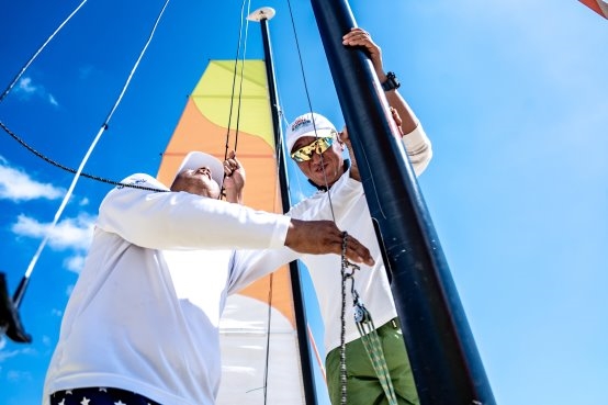2025年10月11日,2025中国家庭帆船赛在宁波象山松兰山亚帆中心扬帆启航。来自全国多省市的35组家庭齐聚东海之滨,在Hobie T1与Hobie T2两组别中展开为期两日的海上角逐,以家庭为舟,以帆为翼,开启一段融合竞技与亲情的蔚蓝旅程。