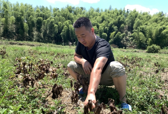 “白芍喜排水性好的土壤,这片沙地透气性强,正好满足它的生长需求,但要注意把控浇水节奏,雨季得及时清沟防涝,避免根系腐烂……”荷源乡陈家村吴联生蹲在田埂边,一边清除未成活的白芍,一边向村民细致讲解白芍管护要点,额角的汗珠顺着脸颊滑落,却丝毫没影响他的专注。