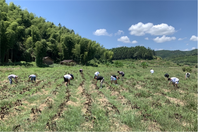 在黎川县荷源乡陈家村的中草药种植基地,20余名村民正忙着对白芍田间管护,指尖翻飞间,一片片白芍苗舒展着翠绿叶片,在沙地上勾勒出充满生机的图景。谁能想到,这片如今孕育希望的土地,曾是闲置多年的撂荒沙地。
