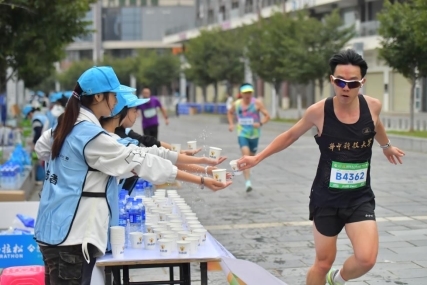 本次赛事从起点开始,每5公里设置一个饮料/饮水站,2个饮料/饮水站中间设置一个用水/饮水站。赛道沿途12.5公里、17.5公里、22.5公里、27.5公里、32.5公里、35公里、37.5公里处设置有补给站。