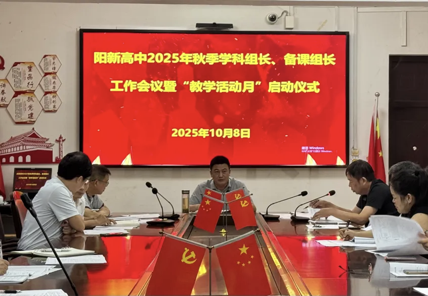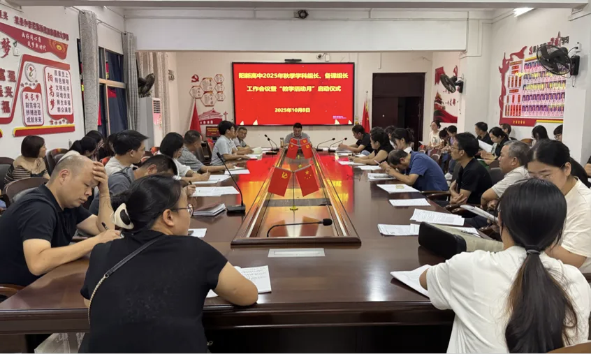 秋意渐浓,学履不停。为进一步明确新学期教研教学方向,深化课堂改革,提升教育教学质量,10月8日晚19:00,湖北省阳新县阳新高中在校区尚善楼1二楼会议室召开了2025年秋季学科组长、备课组长工作会议暨“教学活动月”启动仪式。副校长柯炳阳,教师发展中心成员,年级教学主任、学科组长、备课组长参加会议,会议由教务处主任陈新慎主持。