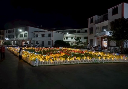 此外,广场一侧精心打造的小花圃也成为村中一景。尽管圃中花卉为仿生材质制作,但设计精巧、色彩斑斓,夜晚时分“花团锦簇”、微光闪烁,既省去了后续养护的麻烦,又常年为乡村增添亮色,成为了村民拍照、闲聊的好去处。