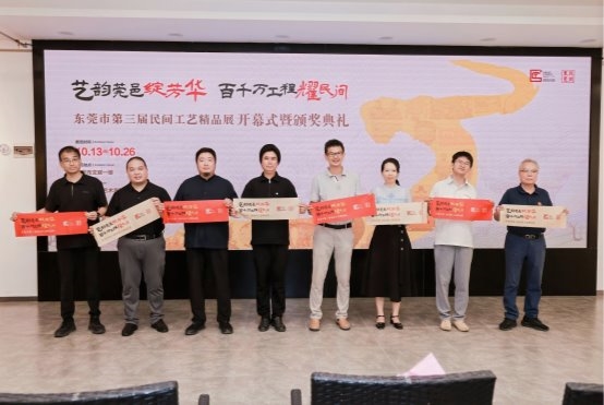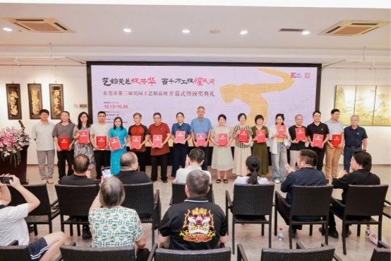 10月17日,“艺韵莞邑绽芳华 百千万工程耀民间——东莞市第三届民间工艺精品展”在东莞文艺空间正式开幕并举行颁奖典礼。此次活动由东莞市文学艺术界联合会(简称市文联)主办,东莞文学艺术院、东莞市民间文艺家协会(简称市民协)承办,旨在为民间工艺家搭建高水平交流平台,激发民间工艺创作活力,展示民间工艺成果,以文化力量赋能“百千万工程”高质量发展。