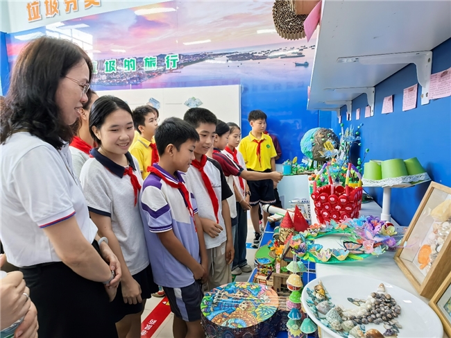 在环创手工作品展区,一件件手工作品既展现垃圾分类的创意成果,更体现了“变废为宝”的环保智慧。最受师生欢迎的当属垃圾分类体感游戏与模拟投放实践活动,现场氛围热烈,既检验了前期学习成果,又激发了师生主动学习分类知识的热情。