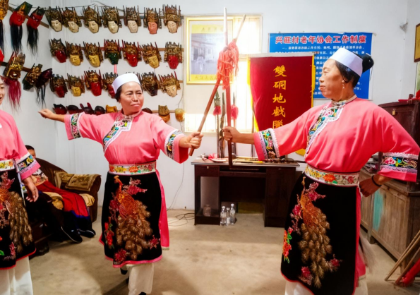 现实困境倒逼变革。当他们首次提出让女性参与地戏表演时,虽然也有部分质疑声,但是在他们挨家挨户做工作下,得到了越来越多人的支持。