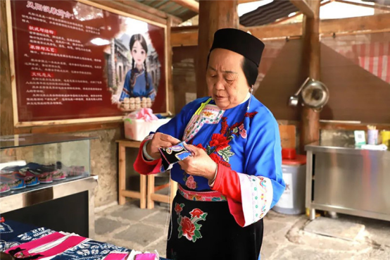 安顺市刺绣非遗传承人田茂芳的刺绣小店里,她每月制作三四双纯手工绣花鞋,每双售价150元,总会被抢购一空。