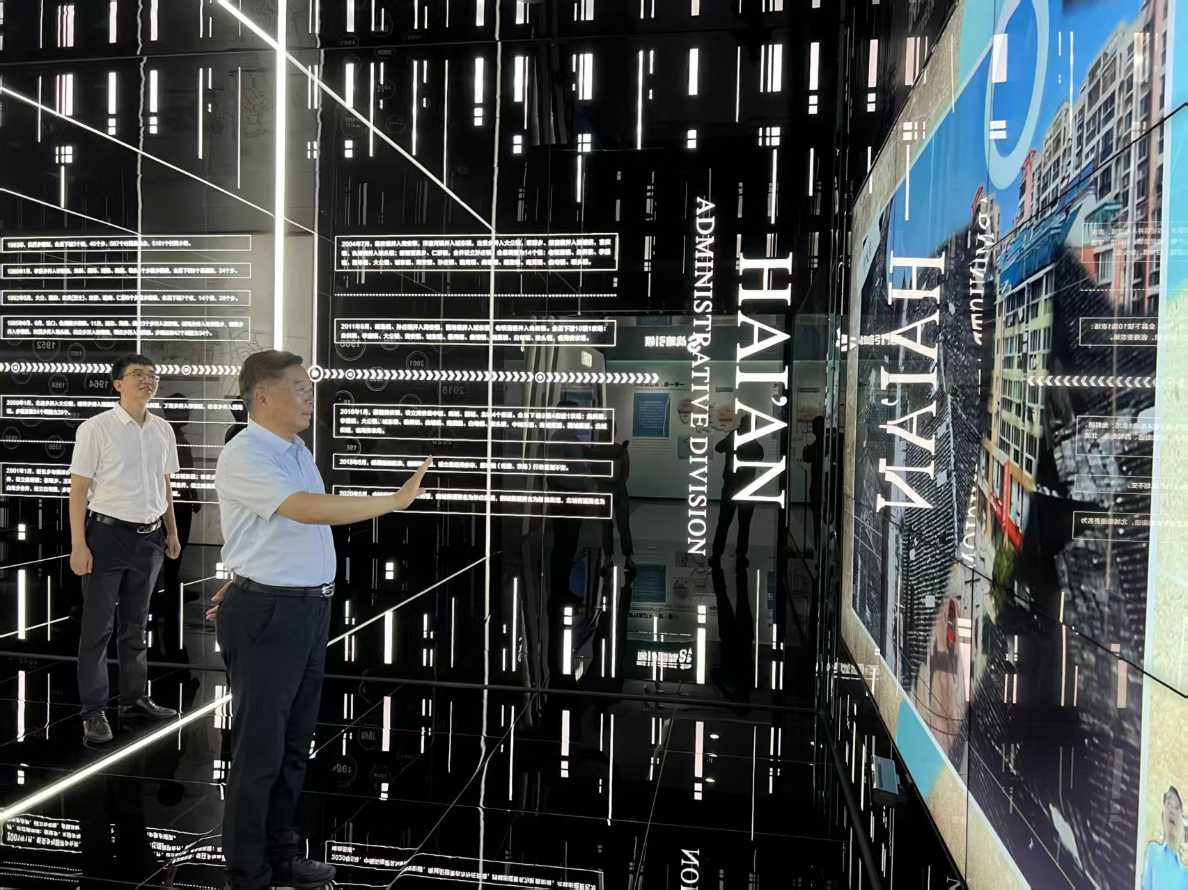 图为董总(左)陪同中国工程院刘汉龙院士调研海安市城市建设规划(冯娜摄)