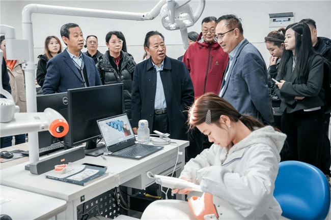 考察团一行抵达后,在理事长李林的陪同下,深入校园实地考察参观,先后走访了医学中心、人体生命科学馆、医药文化馆、学校附属医院等关键场所,详细了解学校的办学环境、基础设施建设及教育教学运行情况。在实验实训中心,考察团成员认真观摩了学生实操演练,一致表示学校实践教学体系设计科学、管理规范,充分体现了“理实一体化”的人才培养理念,对实训设备配置、严谨的实践教学管理给予高度评价。