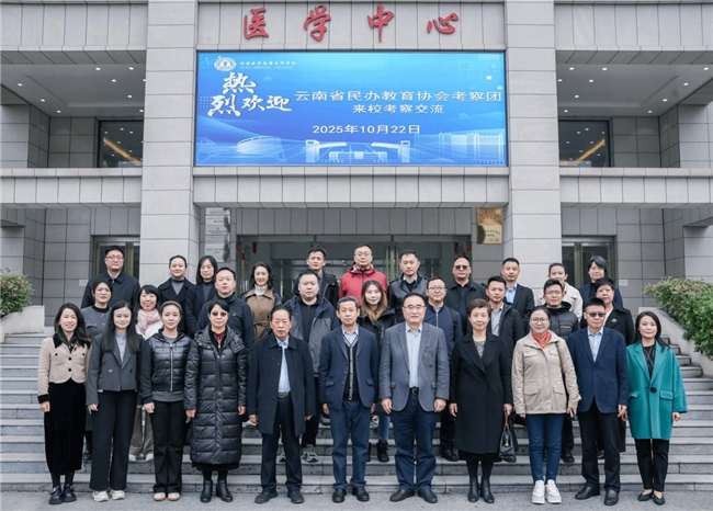 2025年10月22日,云南省民办教育协会会长邹平教授带队云南省民办教育协会考察团一行23人到西安医学高等专科学校开展考察交流活动,旨在学习借鉴西安医专在民办高等教育高质量发展中的成功经验与实践做法,学校理事长李林、党委书记韩忠诚等领导班子成员及相关部门负责人热情接待了考察团一行并全程陪同。