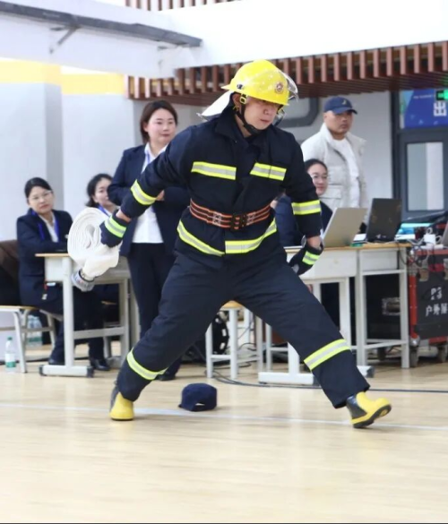 秩序条线:秩序岗位比拼包含行为规范展示、消防设施操作、体能测试三个环节以考核秩序团队的专业素养、消防技能和体能水平。消防设施操作从正规着装到水带连接,装备回收仅用2分多钟,行为规范展示规范标准,体能测试中队员们步伐稳健 —— 从 “形象展示” 到 “应急实操”,尽显秩序队伍的严谨与力量。