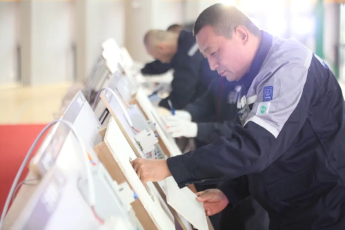 工程条线:工程岗位考试分为实操技能考核和设施设备巡检考核上下半场两部分,考核内容各有侧重。实操技能考核通过“入户电路排查及修复”、“共用部位石膏板修复”,考核操作规范性、故障定位准确性、修复质量、工具使用熟练度等多个维度。下半场的设施设备巡检考核,大屏实时转播设备机房巡检过程,队员们弯腰检查线路、记录参数,随后在操作板前快速排查配电、供水线路的“隐藏问题”,拆线、修复、通电测试一气呵成,展现 “物业医生” 的精准判断力;