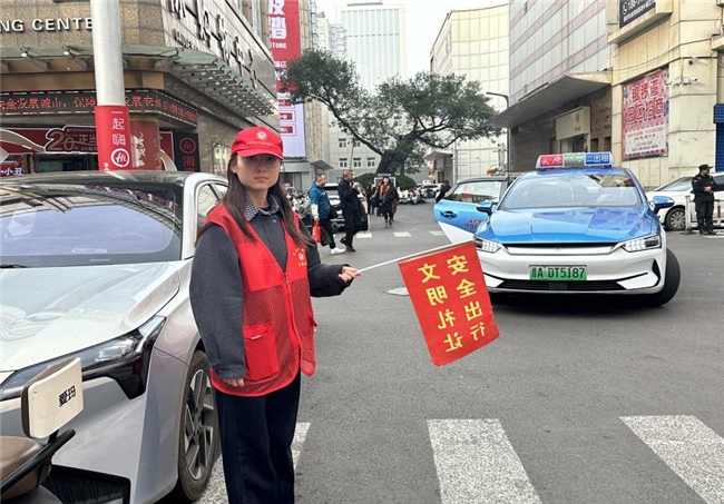 在铜锣湾国际购物中心附近的交通路口,王沁佳手持 “安全出行 文明礼让” 指示旗,成为了一名 “文明哨兵”。她眼神专注,时刻关注着路口的交通状况,看到有行人即将闯红灯,便立刻上前挥旗提醒;遇到不熟悉道路环境的游客,主动上前询问并提供帮助。她的耐心引导和细致服务,让路口的交通秩序变得更加有序,也让文明出行的理念在往来市民心中悄然传递。