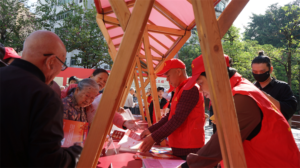 志愿者现场分发科普材料。闽清县委宣传部供图