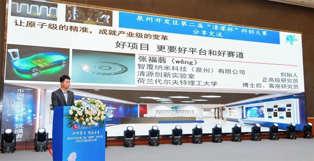 泉州开发区科经局负责人介绍了本届大赛在赛道设置、奖励支持、服务保障上的全面升级;刚刚在第三届全国博士后创新创业大赛中获得创业赛金奖的张福蓊博士,代表首届“清濛杯”一等奖获奖团队分享了项目落地泉州开发区后的成长历程与科创感悟,他说:“科研成果既要写在书本上,更要摆上货架。感谢泉州开发区‘清濛杯’科创大赛为广大青年人才搭建的筑梦舞台。”
