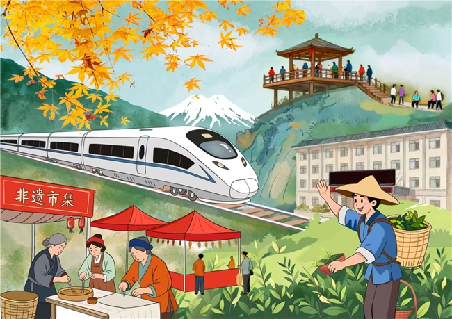 高铁飞驰,让“快旅漫游”照进现实。“想来、愿意来、能来,更玩得舒心顺心”,曾是游客的梦,如今在高铁助力下成为常态。例如沈白高铁的通车,让东北游彻底告别“长途跋涉”,以往“遥不可及”的长白山,如今成了“周末可达”的度假地;合福高铁打造的“3小时黄金旅游带”,更让闽赣皖的山水人文触手可及,武夷山北站10年累计发送旅客847.6万人次,“跨省游”不再是“奢侈选项”。“快旅”之外,“漫游”的舒心度更在配套升级中拉满。G331吉林段沿途设置23个观景台、15个旅游驿站,让“停车赏景”“歇脚补给”随走随停;佛山禅城以“饱和式供给”打造消费场景,超100项文商旅活动覆盖全域,从创意产业园“25H家文化节”的300场活动,到南风古灶“唤醒国潮艺术周”的非遗联展,游客从早到晚都有“新乐趣”。
