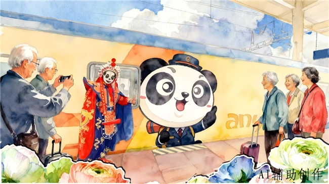 相比于年轻人的“特种兵式旅行”,老年人更喜欢行程宽松、慢品细游的旅程,而银发旅游专列“昼游夜行、快旅慢游”的模式便完美契合这一需求。不同于传统旅行的走马观花,乘坐银发旅游专列旅行时,可将白天宝贵的时间充分用来游览景区,到了夜晚则可在平稳行进的列车中休息,待次日梦醒后即到达下一个景点。有效避免了频繁更换住宿、长途汽车颠簸、着急追赶行程的劳顿,实现了休闲与观光的完美结合。同时老年群体比年轻人有更丰富的人生阅历,对民俗文化、历史故事抱有浓厚的兴趣。银发旅游专列往往会在车厢内组织与目的地风土人情相关的讲座、非遗展示、地方戏曲欣赏等特色文化活动。从“中原铁道·大河之南号”的宋式茶艺表演,到“齐鲁之星”的胶东非遗“花饽饽”制作展示,从“环西部火车游·崆峒号”的非遗手作体验,到“安逸号”熊猫专列的川剧变脸。精彩多样的文化活动使列车成为串联风景与文化的纽带,让旅途升华为一场场深度的文化浸润之旅。