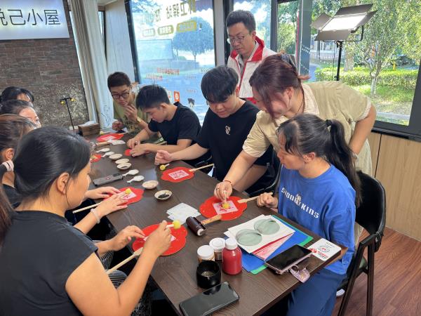 凝心拓印,聚力同庆印丹心。在金都社区甦坊小站,“国庆绘盛景 拓印印初心”文化联动活动热闹开展。专业老师现场指导外卖小哥等新业态群体党员制作主题拓印扇子,天安门、五星等鲜明的国庆元素跃然扇面,每一笔拓印都承载着对祖国的美好祝福。交流环节中,新业态党员代表结合日常配送经历,分享城市基础设施完善、社区服务升级的真切变化;支部党员则交流基层服务经验与工作心得,不同群体间的思想碰撞凝聚起“共建共享”的强大合力。