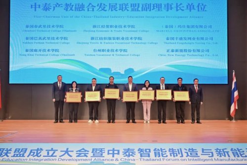 此次中泰产教融合发展联盟成立大会暨相关论坛的成功举办,不仅为中泰职教合作搭建了新平台,更标志着两国在智能制造与新能源技术领域的协同创新迈入新阶段。站在中泰建交50周年的新起点,联盟将持续发挥纽带作用,为构建更为紧密的中泰命运共同体贡献职教力量。 (供稿人:浙江东方职业技术学院)