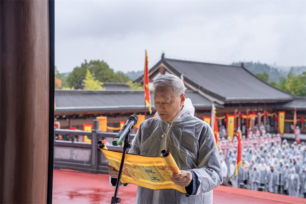 考亭书院山长朱杰人在集成殿广场前恭读祝文。吴大灼 摄