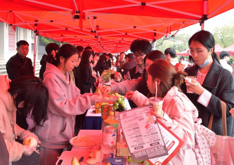 舌尖上的园艺创新。在美食品鉴区,一系列由科研成果转化而来的特色“园艺”美食汇聚于此,让观众在视觉与互动之外,品味“舌尖上的园艺”。以菊花、玫瑰花等可食用花卉调制的茶饮,花香沁人心脾;各类水果、蔬菜、茶叶、花卉深加工产品则展现了园艺产业的多元价值。现场观众在品尝美食与茶饮的同时,深切感受到园艺科技赋能生活的创新魅力。“原来园艺不只是种花种菜、修剪果树,还能培育优质品种、做出美味食物!”一位学生在品尝后兴奋地说。